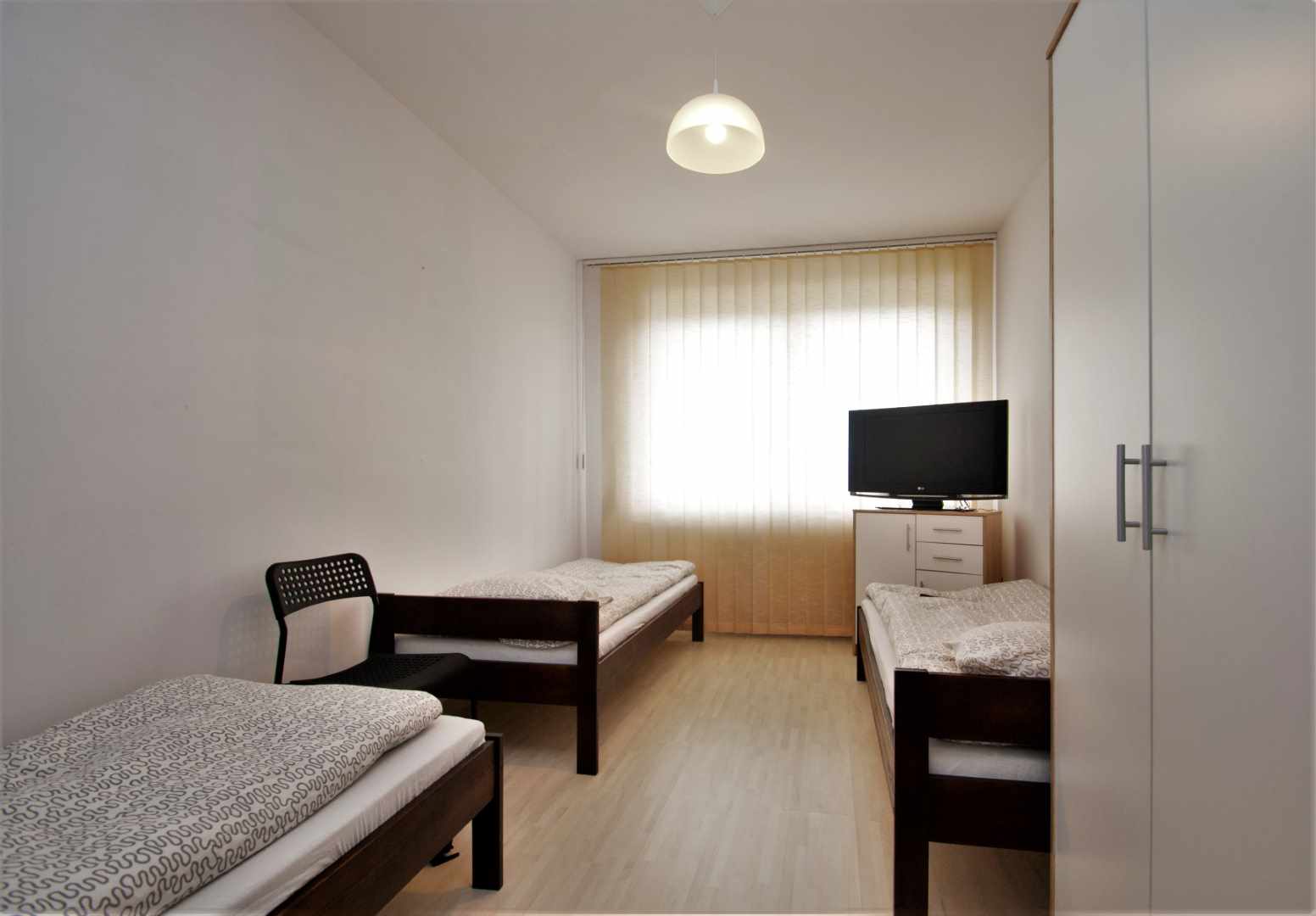 W pokoju znajdują się trzy pojedyncze łóżka, stół, krzesła, szafki, TV i Internet WiFi.