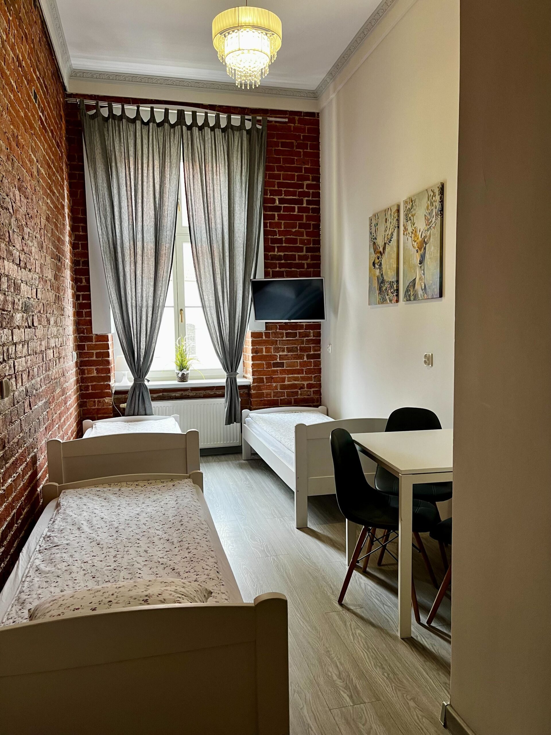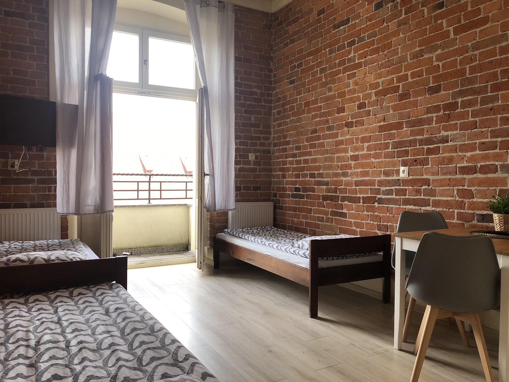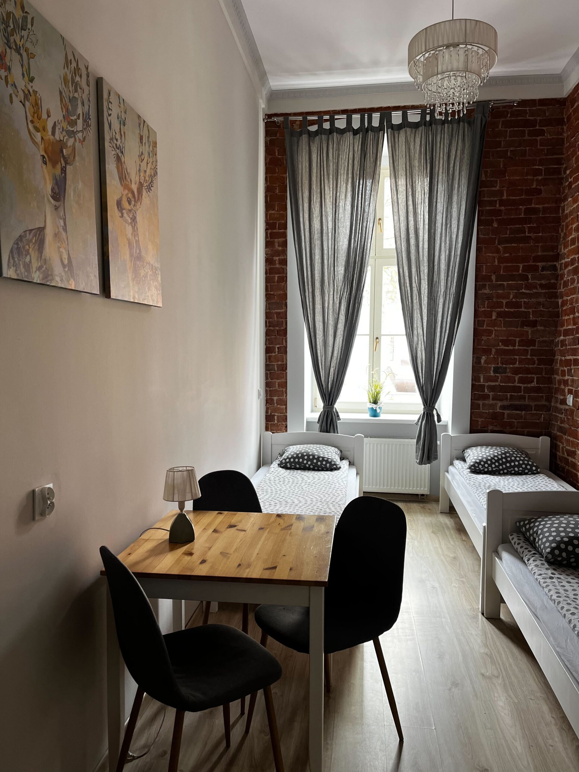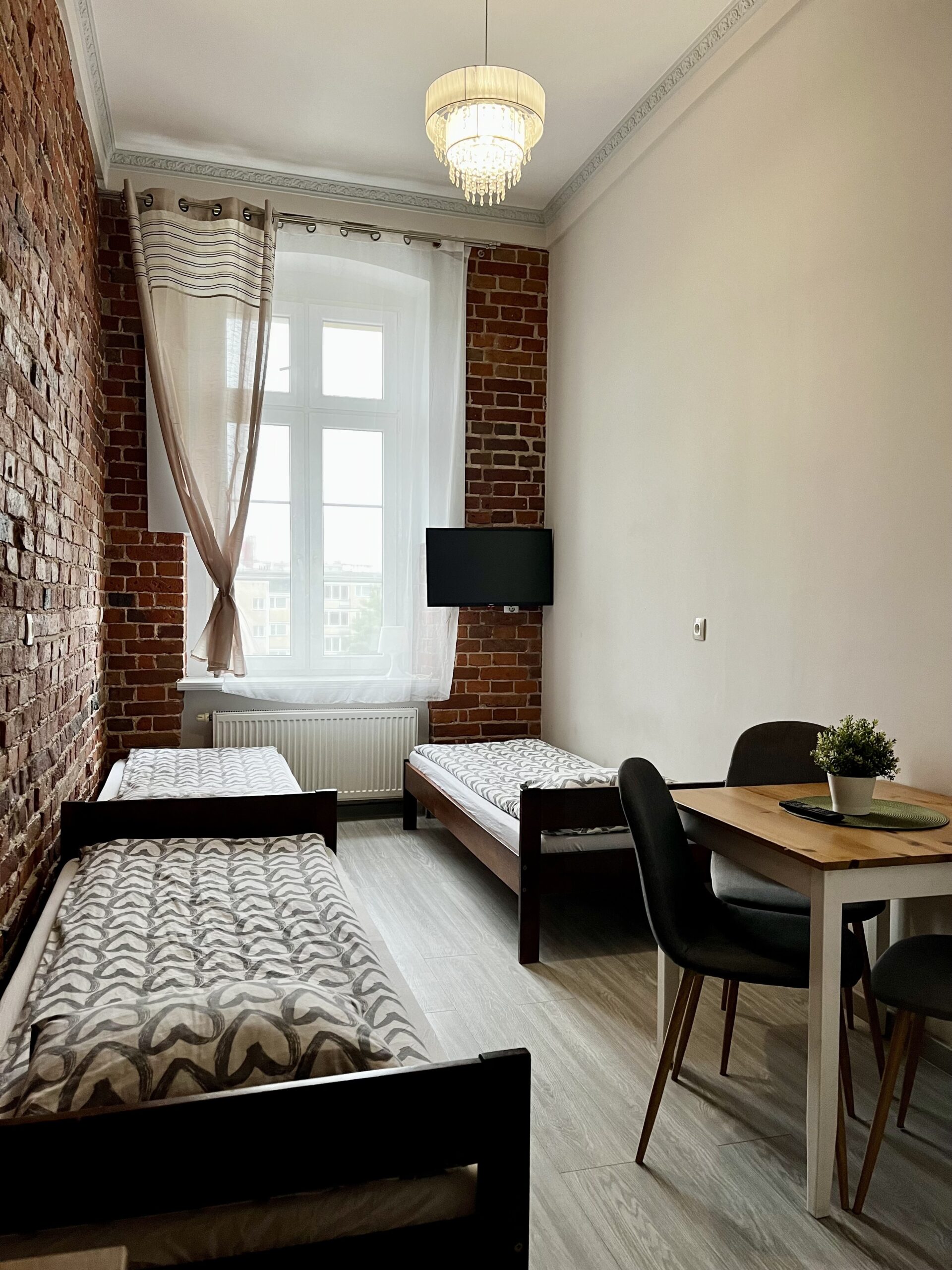 Przestronny, jasny pokój z dużym oknem oraz balkonem. Dużą zaletą jest widok na zjawiskowy, gotycki Kościół św. Maurycego.